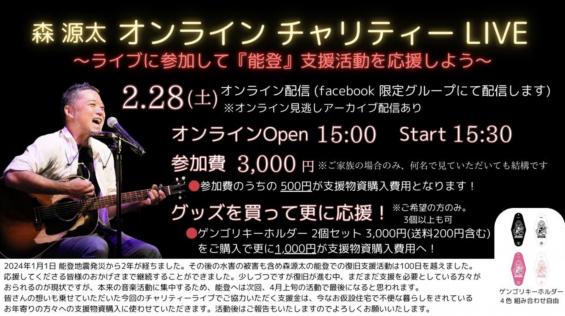 今回のライブは、ご参加いただくと災害支援活動の応援に繋がるチャリティー企画です♪
